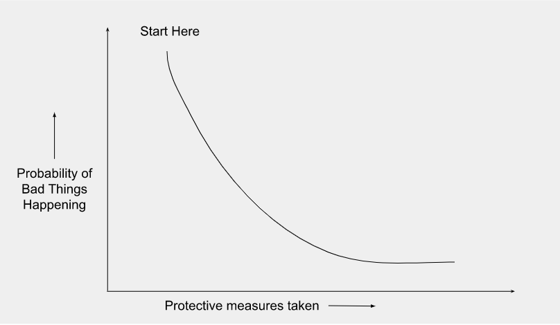 Our lives start with lots of risk and no protection and we somehow decide what risks to focus on through avoidance, mitigation and insurance. You’ll notice, though, that you’re never done with risk no matter how much resource you throw at it. So while there is such a thing as spending too little on protection one can also overdo it.