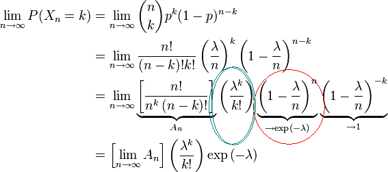 It is 1 – λ/n, which is the probability of NO event, ‘grown’ by the number of trials. In my examples above, I used events as opposed to probabilities of events. This makes no difference to the math, really, you just take the inverse of all your terms.